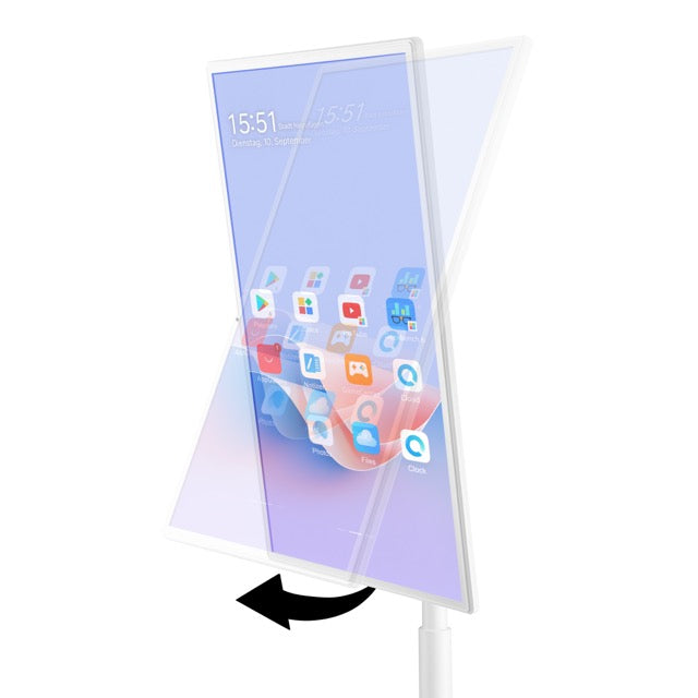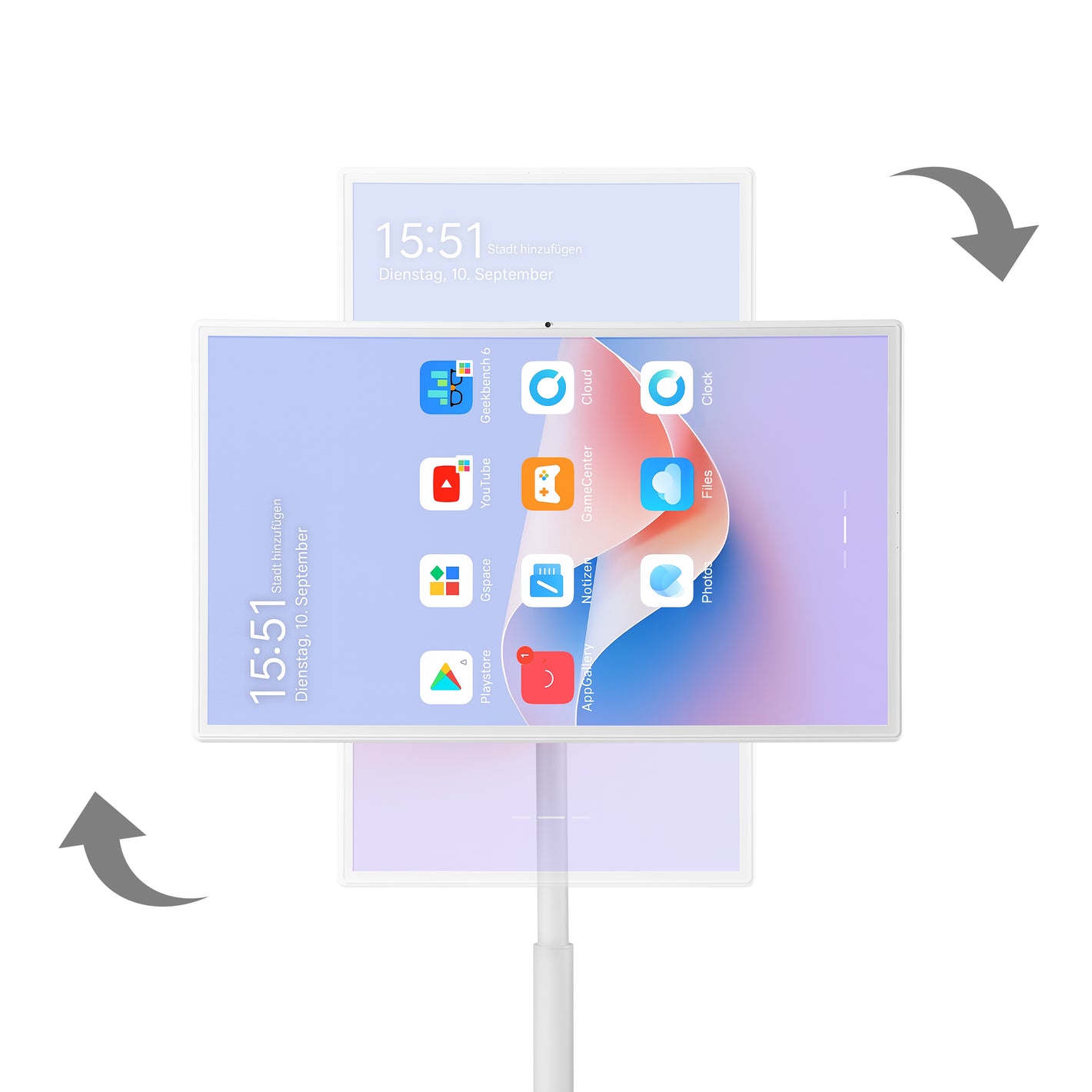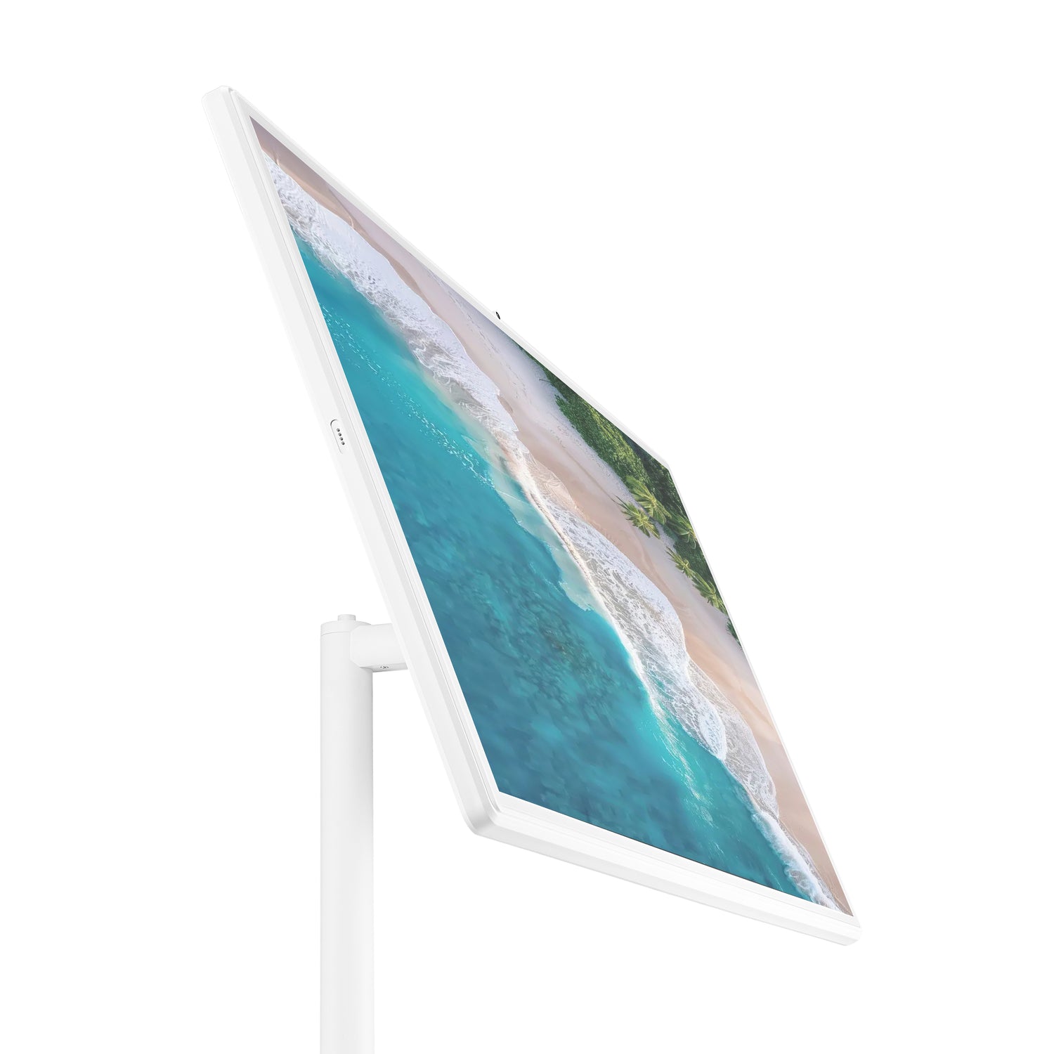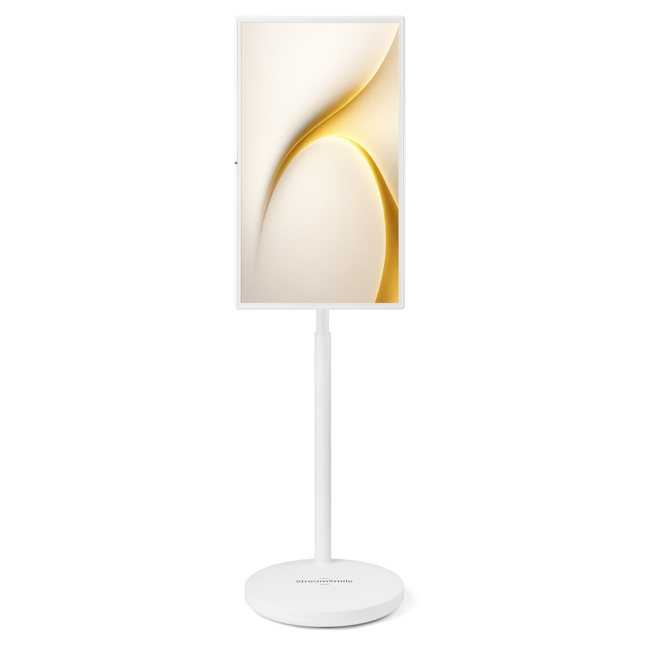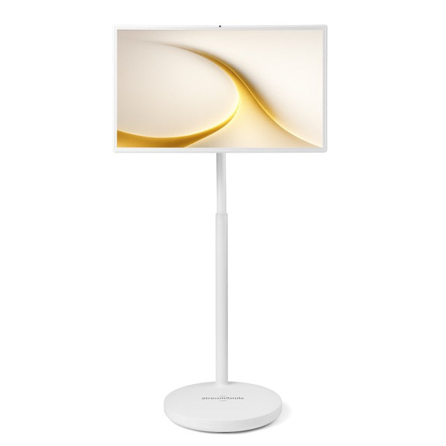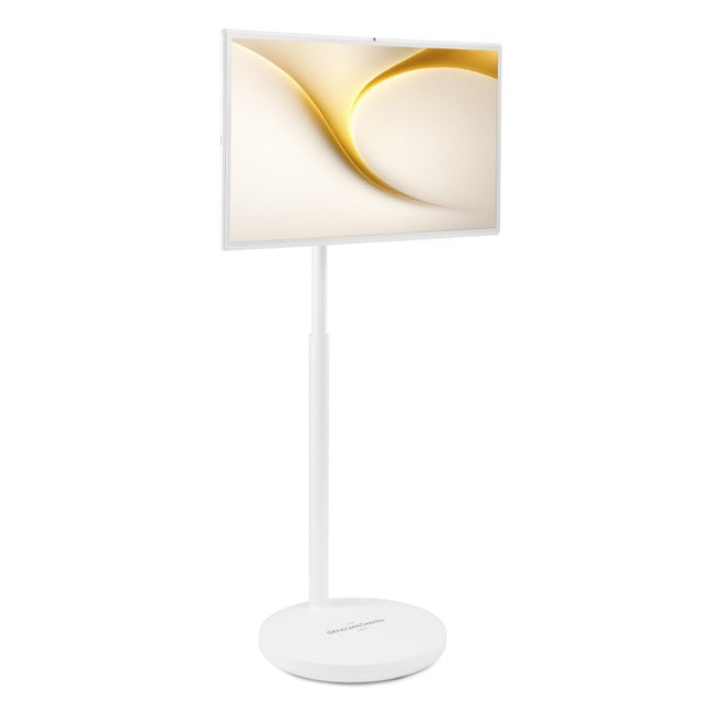 StreamSmile™ rolls with you. From the kitchen to the patio to the bath, this screen goes anywhere you need it, no mounts, no wires, no stress.