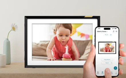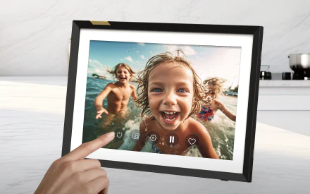 The built-in motion sensor activates the frame when you’re nearby and puts it to sleep when you leave the room. Your photos are always ready when you are, without wasting energy.