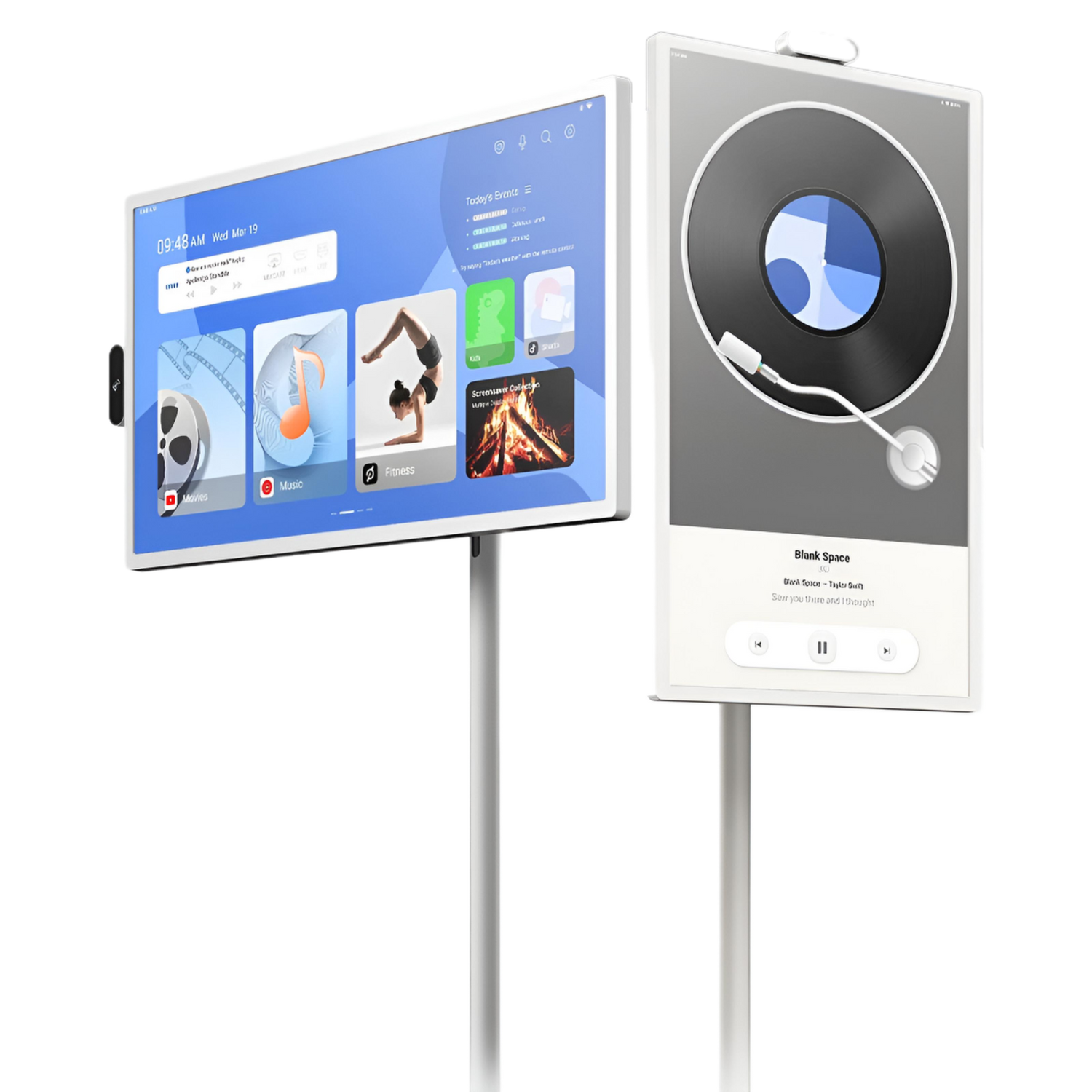 StreamSmile™ rolls with you. From the kitchen to the patio to the bath, this screen goes anywhere you need it, no mounts, no wires, no stress.